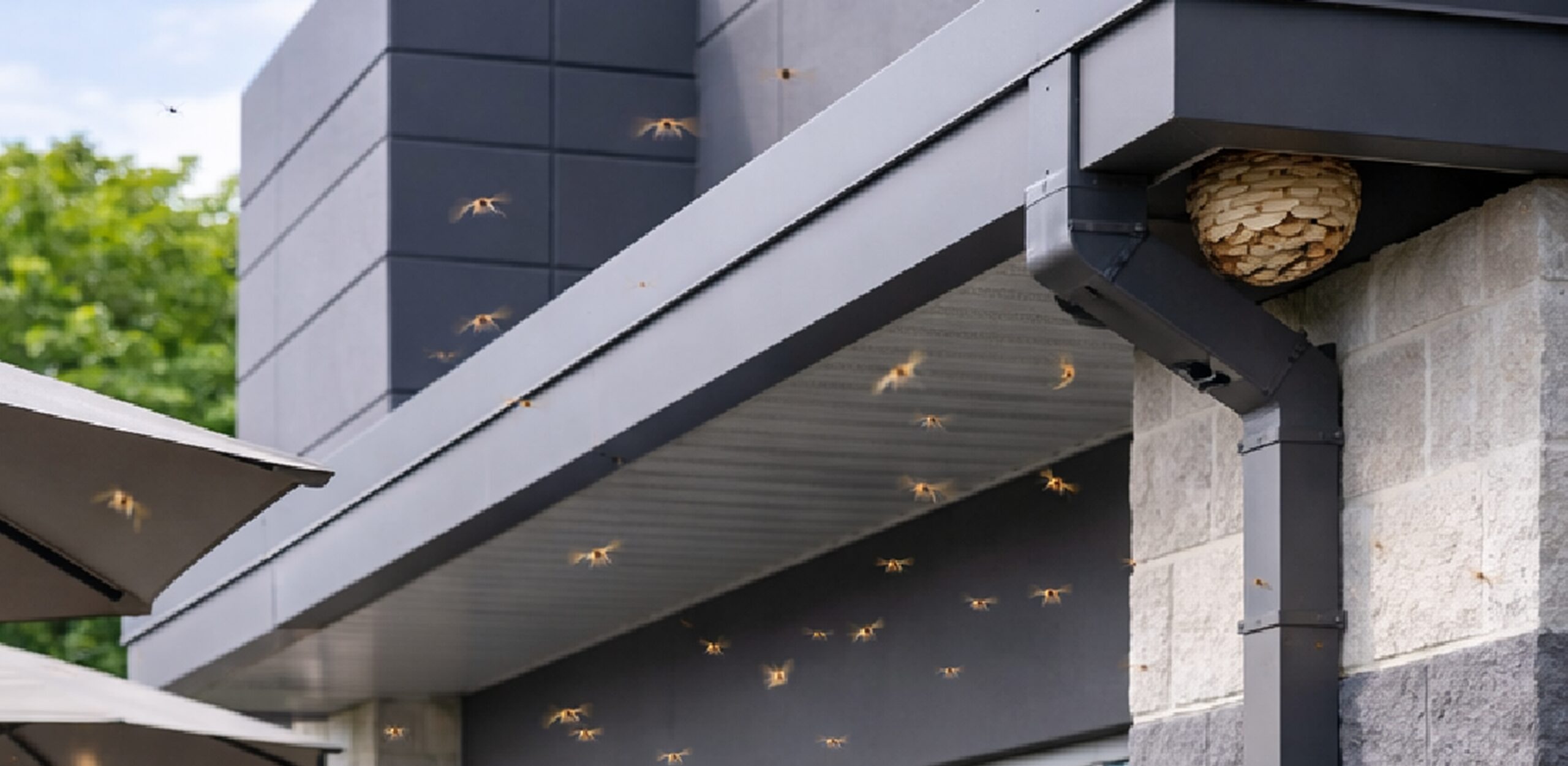 Article Wasp pest control What facilities teams need to know about wasp season Share: The challenge Why wasp season catches organisations off guard Many facilities managers underestimate how quickly a wasp problem can escalate once the season begins. What starts as a single nest in early spring can develop into thousands of aggressive workers by late summer. Wasps commonly establish nests in: roof voids soffits and fascia boards plant rooms wall cavities bin stores and waste areas roof plant and HVAC equipment warehouses and loading bays Because many commercial sites provide shelter and food sources, they can become ideal nesting environments. What makes wasp activity particularly challenging for businesses is the speed of colony development and the increasing defensive behaviour as nests grow. A small nest in May can become a major safety risk by July. Understanding the wasp life cycle It starts with one queen In early spring, a fertilised queen emerges from winter hibernation and begins building the first nest cells alone. At this stage the nest is very small and often goes unnoticed. Once the first worker wasps hatch, the colony begins to expand rapidly. Colonies scale quickly By mid-summer: colonies can reach 3,000–10,000 wasps worker activity increases dramatically defensive behaviour intensifies This is when most businesses first notice the problem.By late summer, wasps become more aggressive as food sources decline and colonies reach peak size. Why commercial sites are vulnerable Many workplaces provide ideal conditions for wasp nesting.Common risk factors include: Waste and food sources Food waste, bins and outdoor eating areas attract foraging wasps. Shelter and structure Roof voids, soffits and plant areas offer sheltered nesting sites. Low-disturbance environments Industrial estates, warehouses and rooftop plant areas are rarely accessed, allowing nests to grow undetected. Warm infrastructure Equipment rooms and plant areas provide stable temperatures ideal for nest development. Where nests commonly appear The most common nesting locations on commercial premises include: roof eaves and soffits wall cavities loft spaces and roof voids roof plant areas external cladding gaps air vents and ducts bin stores storage buildings and sheds Facilities teams should also check: loading bays plant enclosures car park structures solar panel installations When wasp season happens Typical UK wasp activity timeline: March–April Queen emerges and builds first nest May–June Workers hatch & colony grows July-August Colonies reach peak size and aggression September Food shortages increase nuisance behaviour October Colonies collapse and nests are abandoned The most effective control measures happen early in the season. Health and safety risks Wasp activity presents a number of operational risks for businesses. Staff and visitor safety Wasps will defend nests aggressively if disturbed.This can lead to: stings allergic reactions disruption to site operations Workplace disruption Active nests can make areas unsafe, forcing closure of: entrances outdoor seating areas loading bays plant areas Public-facing environments Sites with public access such as retail, hospitality or healthcare environments face increased reputational risk. Prevention and early control The most effective approach is early detection and preventative action. Recommended steps include: seasonal pest inspections in spring monitoring rooflines and plant areas sealing structural gaps and entry points managing waste and food sources removing attractants near buildings installing preventative deterrents where appropriate Early intervention can prevent small nests from becoming major infestations. What to do if you find a wasp nest If a nest is discovered, do not disturb it.Attempting to remove or block the nest can provoke aggressive defensive behaviour. Instead: isolate the area where possible warn staff and visitors contact a professional pest control provider Professional technicians can safely assess and treat nests using appropriate methods. Common mistakes organisations make During pest control audits, several issues frequently arise: Ignoring early signs of nest activity Attempting DIY removal Blocking nest entrances Delaying action until peak season Not having a seasonal pest management plan Addressing these issues early reduces risk and disruption. The outcome Proactive wasp management helps organisations achieve: 1 Operational continuity fewer disruptions to staff and visitors safe access to operational areas reduced nuisance complaints 2 Legal and reputational protection reduced risk of stings or incidents safer working environments documented pest management procedures Are you ready for wasp season? Spring inspections are the most effective way to prevent large infestations later in the year.Early assessment allows organisations to identify risk areas, implement preventative measures and protect staff, visitors and operations before colonies expand. Contact the Nurture Pest Control team to assess your site and implement a seasonal wasp management plan. Contact us Frequently asked questions When does wasp season start in the UK? Wasp season in the UK typically begins in early spring, usually between March and April, when fertilised queen wasps emerge from hibernation. After overwintering in sheltered locations such as roof spaces, wall cavities or tree bark, the queen begins building the first nest cells alone. At this early stage the nest is very small and often goes unnoticed. By late spring and early summer, the first worker wasps hatch and take over nest expansion. Colony numbers then increase rapidly throughout the summer months. Wasp activity usually peaks between July and September, when nests reach their largest size and food competition makes wasps more aggressive. For businesses, the most effective time to identify risks and implement preventative measures is early spring before colonies become established. Ho