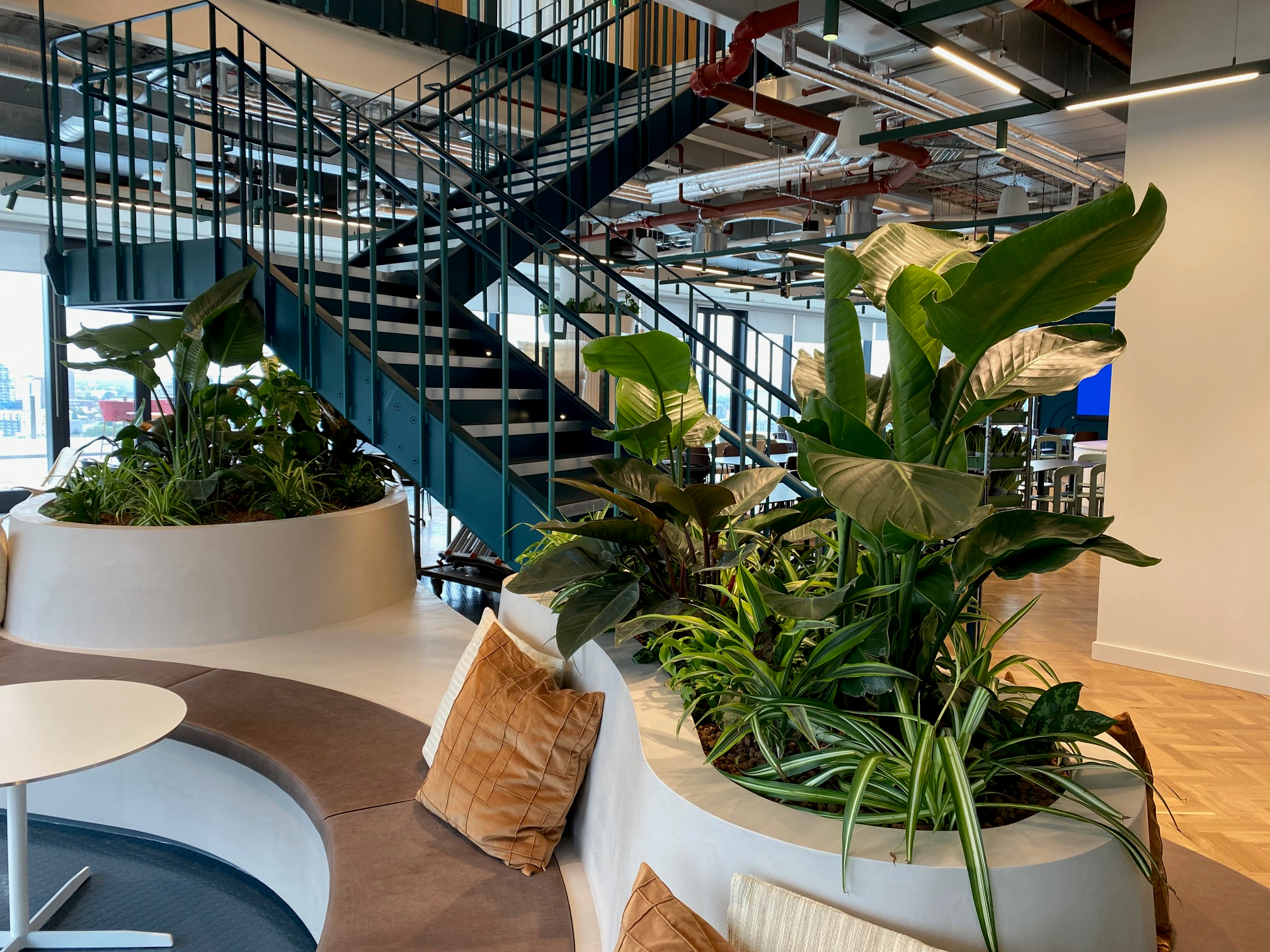 News Nurture Plant Displays cleaned up at the prestigious 2024 Plants at Work Awards at London Excel Date: 30th October 2024 Share: After winning two Gold Leaf awards for our Christmas displays for clients McCann and UBS, we struck gold again in the Design and Installation category of our amazing plant displays at Boston Consulting Group’s new offices in Canary Wharf. Winning three Gold ‘Leaf Awards’ for our innovative interior plant displays. The awards, which are celebrating their 20th anniversary, recognise design and innovation with workplace interior plant displays and are rigorously judged. Each of the shortlisted projects showcases exceptional project design, installation and service. Nurture Plant Displays has been successful in previous years and entered three awards this year, winning Gold for all three projects – an amazing achievement from our team, showing their creativity, dedication and expertise. Après Ski Christmas Display for McCann Après Ski was the theme chosen for this year’s award-winning Christmas display for McCann, the global advertising giant. Curated by our lead designer Joanna Mariott, the display evolved from drawing concepts to reality using a mix of individually sourced products and bespoke items handmade by the Nurture team. A reused igloo was used as the centrepiece, complemented with handmade ski bar and holiday signage, along with snowballs and ski-lift motifs, wooden logs, flocked garland, wooden sleds and zip up stars. To help with installation the challenging igloo construction was pre-assembled at our office and transported to site. After being delighted with our display the previous year, the client had enough faith in the team to give us free reign to create the display and was equally thrilled with the result. The interactive nature of the display made it photogenic and social media friendly, aiding a party atmosphere. Traditional Twist Christmas display for UBS UBS, the multinational investment bank and financial services company, wanted a creative Christmas display for their London office that was warmer in feel to previous years and tied into their red corporate branding. This was also the first festive season that staff from Credit Suisse were going to be in the building, so it was important to show them a warm welcome through an uplifting and joyous festive environment. Joanna Marriott, our lead designer, worked closely with the client to craft an innovative display that met the brief. Zig Zag trees where painted green and complemented with warm natural decorations, along with paper amaryllis flowers. The addition of giant wreaths featuring huge velvet bows added to the warm natural feel. Handmade hanging decorations were very effective in the open space, whilst giant wreaths and wicker animals helped to infuse a traditional, warm and natural feel. The materials and plants chosen also reflected the desire for a traditional theme with a modern twist. Live trees complemented by a multitude of elements went to create a sumptuous design including wreathes on stands, fishbowl and glass tabletop decorations, wicker reindeer, preserved moss and a UBS branded 3D logo. Design and Installation Award for BCG In the Design and Installation category, Nurture was awarded a gold leaf award for its project with Boston Consulting Group (BCG). We were given just a few weeks to design a planting scheme for the client’s new headquarters in Canary Wharf, which required us to produce a fast turnaround of bespoke items on a limited budget. We carefully selected plants to suit the beautiful architecture of building and varied lighting in different zones, whilst also achieving a cohesive overall look and feel. The team including lead designer Robyn Fredenham worked hard to tailor a solution that delighted the client. A lush impactful planting scheme was created for the main reception complementing the client’s brand colour of dark teal. The design incorporated two large corner beds featuring plants that work well in the lower light levels, such as Philodendron congo, which also added a splash of red colour and a rich luxurious touch. In contrast, an event space surrounded by glass windows offered fantastic natural light. Here joinery pieces for planting were incorporated, consisting of kidney shaped beds with seating, and three columns with integrated troughs 2.5m high designed for planting to spill over and create a lush appearance at high level. These were planted with live plants using hydroculture to allow for fewer watering visits. Chlorophytum and lime greens of Asplenium were included here with a splash of the red leaf planting to bring it all together. Working with a limited budget, we delighted the client with planting that delivered a luxurious high-end feel with an element of fun, suiting their new offices. Share: Related content View all insights Nurture Landscapes’ Ahtraeo Punter named in Pro Landscaper’s 30 Under 30: The Next Generation 2025 We are delighted to share that Ahtraeo Punter, Assistant Contracts Manager at Nurture Landscapes, has been recognised in Pro Landscaper’s prestigious 30 Under 30: The Next Generation awards. This accolade highlights the most impressive young talent in the landscaping industry and celebrates Ahtraeo’s dedication, leadership, and vision for the sector. Learn more about Nurture Landscapes’ Ahtraeo Punter named in Pro Landscaper’s 30 Under 30: The Next Generation 2025 Triple Win for Nurture Landscapes and Gavin Jones at the Pro Landscaper Sustainability & Biodiversity Awards Nurture Landscapes and Gavin Jones are proud to announce a clean sweep at this year’s Pro Landscaper Sustainability & Biodiversity Awards, winning in all three categories entered: Grounds Maintenance Company of the Year, Maintenance Contract of the Year, and Commercial Build Over £500k. Learn more about Triple Win for Nurture Landscapes and Gavin Jones at the Pro Landscaper Sustainability & Biodiversity Awards Gavin J