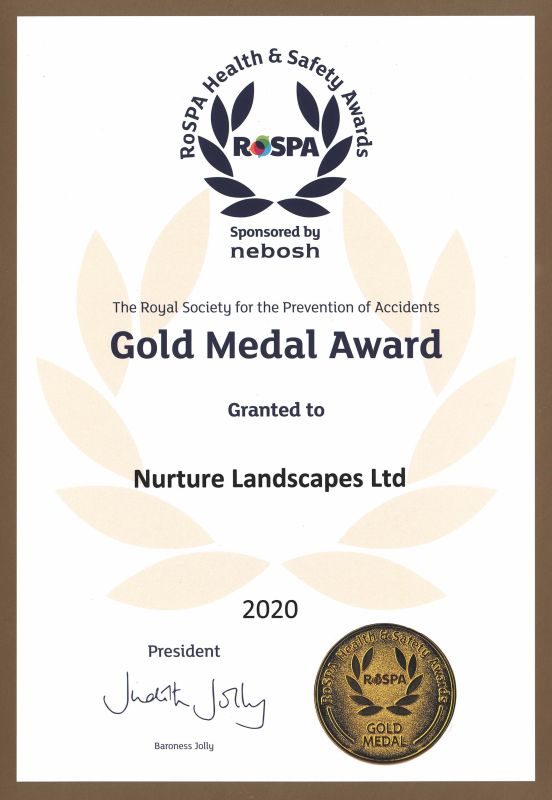 News RoSPA Gold Medal Award Date: 28th July 2020 Share: We are proud and delighted to achieve RoSPA 2020 Gold Medal Award, which represents 5 consecutive Golds! The RoSPA Awards are non-competitive and are based on a company’s individual health and safety performance. Companies will need to demonstrate their clear commitment and proven performance in managing risks to their staff, their contractors, and their visitors alike. It is a true testament to all our staff that we have maintained Gold accrediation for 5 years consecutive. We are proud and delighted to achieve RoSPA 2020 Gold Medal Award, which represents 5 consecutive Golds! The RoSPA Awards are non-competitive and are based on a company’s individual health and safety performance. Companies will need to demonstrate their clear commitment and proven performance in managing risks to their staff, their contractors, and their visitors alike. It is a true testament to all our staff that we have maintained Gold accrediation for 5 years consecutive. A big thank you to Robin Jackson and our Compliance and Health & Safety team for ensuring our working environment and practices are all consistently safe. Share: Related content View all insights Nurture Landscapes’ Ahtraeo Punter named in Pro Landscaper’s 30 Under 30: The Next Generation 2025 We are delighted to share that Ahtraeo Punter, Assistant Contracts Manager at Nurture Landscapes, has been recognised in Pro Landscaper’s prestigious 30 Under 30: The Next Generation awards. This accolade highlights the most impressive young talent in the landscaping industry and celebrates Ahtraeo’s dedication, leadership, and vision for the sector. Learn more about Nurture Landscapes’ Ahtraeo Punter named in Pro Landscaper’s 30 Under 30: The Next Generation 2025 Triple Win for Nurture Landscapes and Gavin Jones at the Pro Landscaper Sustainability & Biodiversity Awards Nurture Landscapes and Gavin Jones are proud to announce a clean sweep at this year’s Pro Landscaper Sustainability & Biodiversity Awards, winning in all three categories entered: Grounds Maintenance Company of the Year, Maintenance Contract of the Year, and Commercial Build Over £500k. Learn more about Triple Win for Nurture Landscapes and Gavin Jones at the Pro Landscaper Sustainability & Biodiversity Awards Gavin Jones secures major USAF Grounds Maintenance contract Gavin Jones has commenced a major new grounds maintenance contract across 11 RAF sites. Learn more about Gavin Jones secures major USAF Grounds Maintenance contract Horticultural businesses unite to create gardens for the Rob Burrow Centre for Motor Neurone Disease Some of the UK’s leading horticultural businesses have joined forces to design and deliver therapeutic gardens and outdoor spaces for the new Rob Burrow Centre for Motor Neurone Disease (MND) at Seacroft Hospital in Leeds. Learn more about Horticultural businesses unite to create gardens for the Rob Burrow Centre for Motor Neurone Disease Nurture Group crowned Green Business of the Year at the Green Awards UK 2025 Nurture Group has been crowned Green Business of the Year UK 2025, recognised for outstanding sustainability, biodiversity and ESG leadership. Learn more about Nurture Group crowned Green Business of the Year at the Green Awards UK 2025 Double win for Nurture Group with the BALI National Landscape Awards 2025 Nurture Group achieves a double success at the BALI National Landscape Awards 2025 – winning for the Urban Nature Project at the Natural History Museum (soft landscaping) and the Virgin Media O2 interior landscaping installation. Learn more about Double win for Nurture Group with the BALI National Landscape Awards 2025
