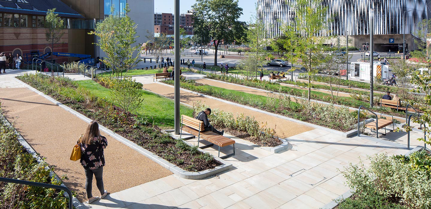 Teesside Park, part of the British Land portfolio, wanted to improve the public realm around retail frontages through the use of attractive landscaping features to enhance the customer experience.