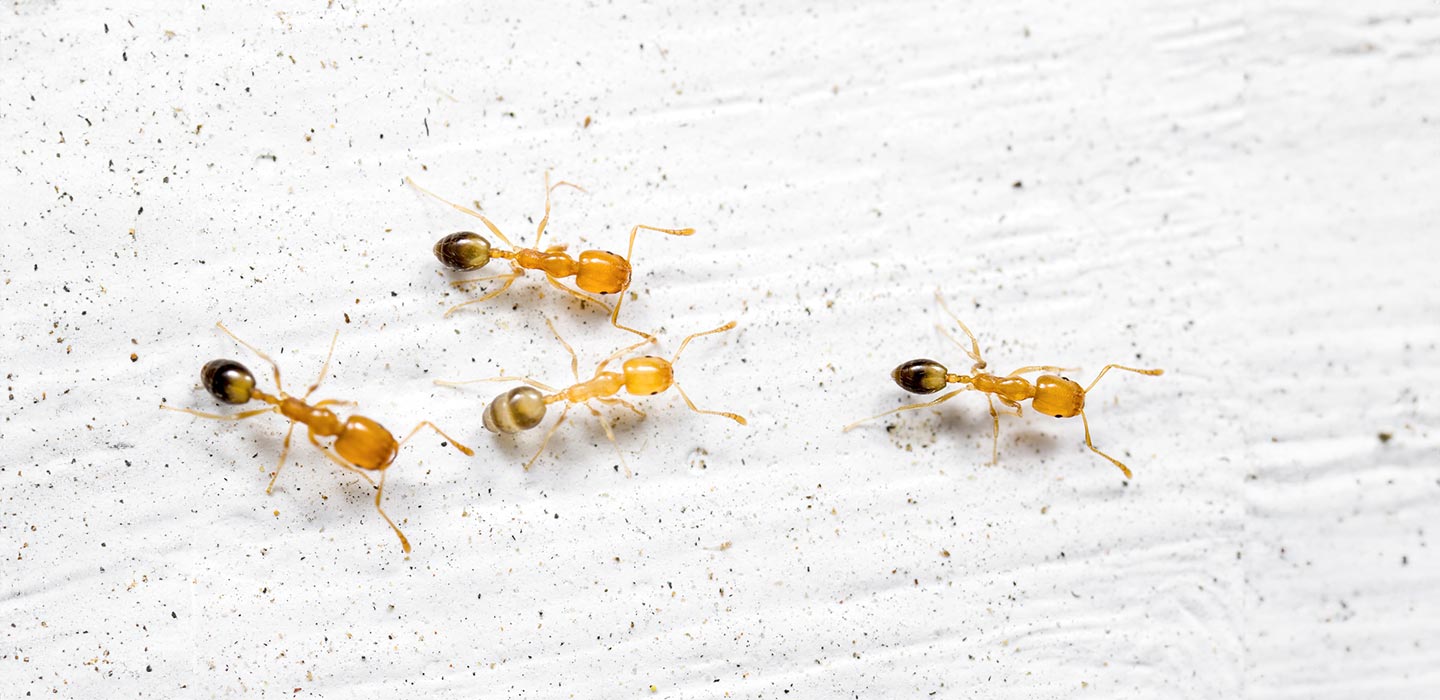 These are a very small, yellowish-brown tropical ants that can establish colonies comprising of hundreds of Queens indoors. They prefer warm environments and can be difficult to eradicate. They are known for their ability to spread rapidly throughout buildings and can spread bacteria. A typical insecticidal spray will only spread the colony.