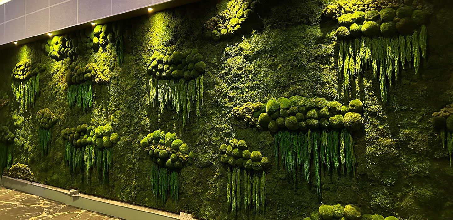 Moss walls bring the positive benefits of nature into the workplace, for a more attractive and inspiring environment.